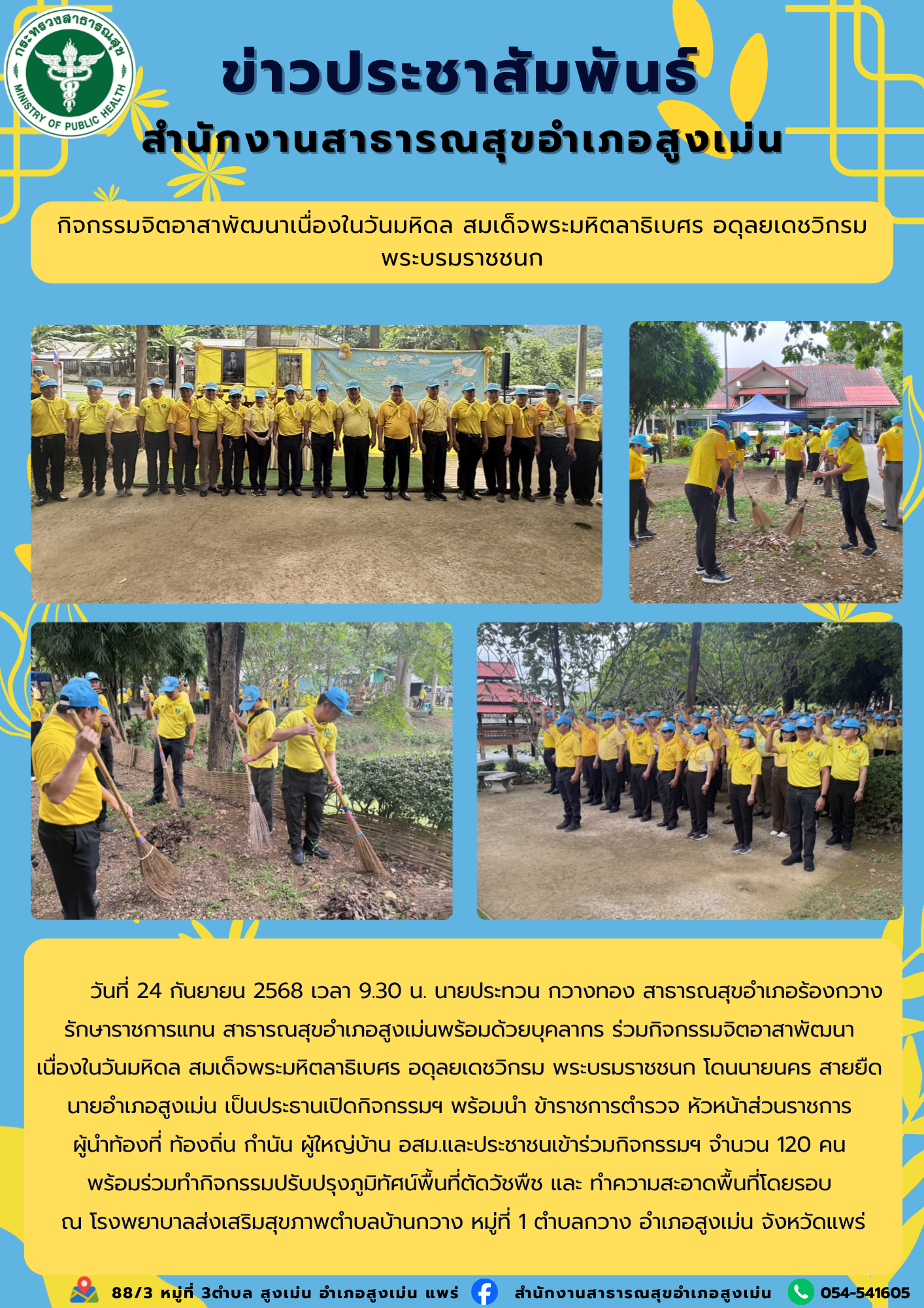 กิจกรรมจิตอาสาพัฒนาเนื่องในวันมหิดล สมเด็จพระมหิตลาธิเบศร อดุลยเดชวิกรม พระบรมราชชนก 2568